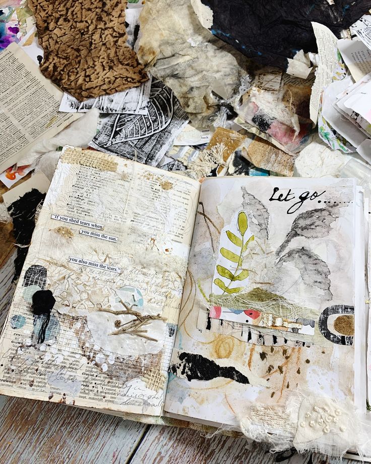 مش لازم تلتزم بالورق بس. جرب تضيف قطع قماش وخيوط تطريز للكولاج بتاعك. لو عندك ماكينة خياطة، ممكن تثبت القماش على الورق عشان تضيف لمسة مختلفة.